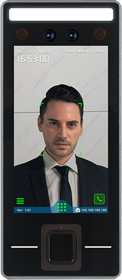 Thiết bị nhận diện khuôn mặt, vân tay, palm vein. Dung lượng 20.000 users. Màn hình 5.5 inchs