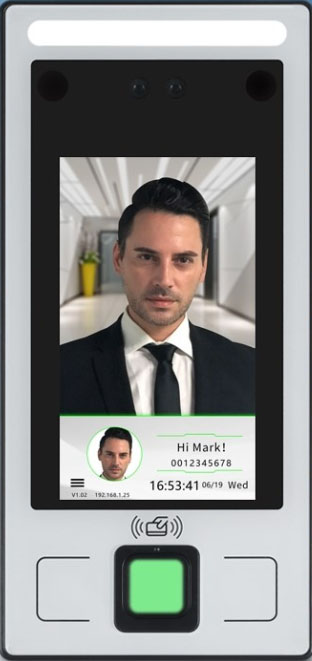 Thiết bị nhận diện khuôn mặt, vân tay, palm vein. Dung lượng 20.000 users. Màn hình 8 inchs