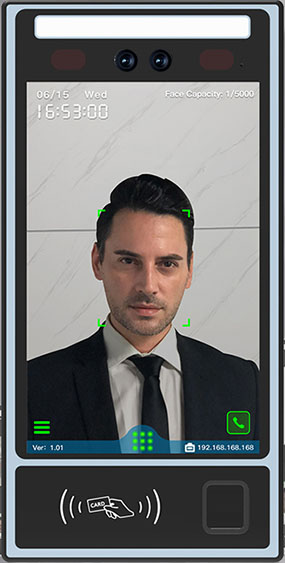 Thiết bị nhận diện khuôn mặt, vân tay. Dung lượng 5000 users. Màn hình 4.3 inchs
